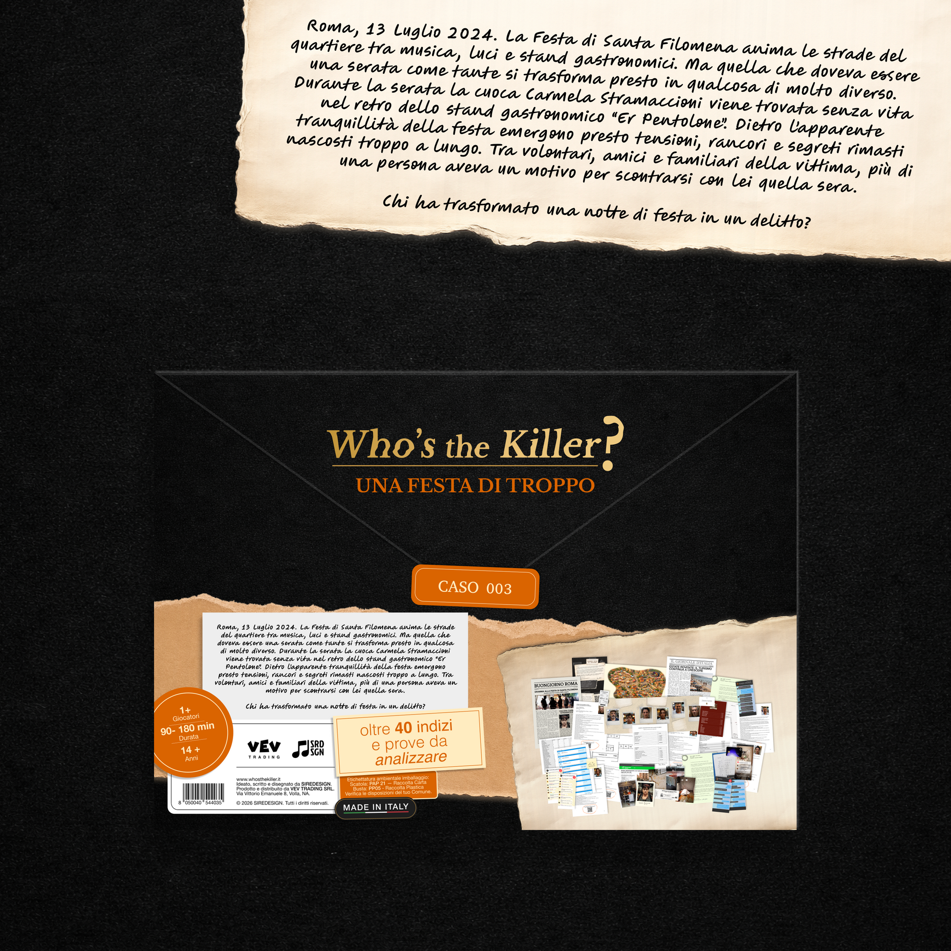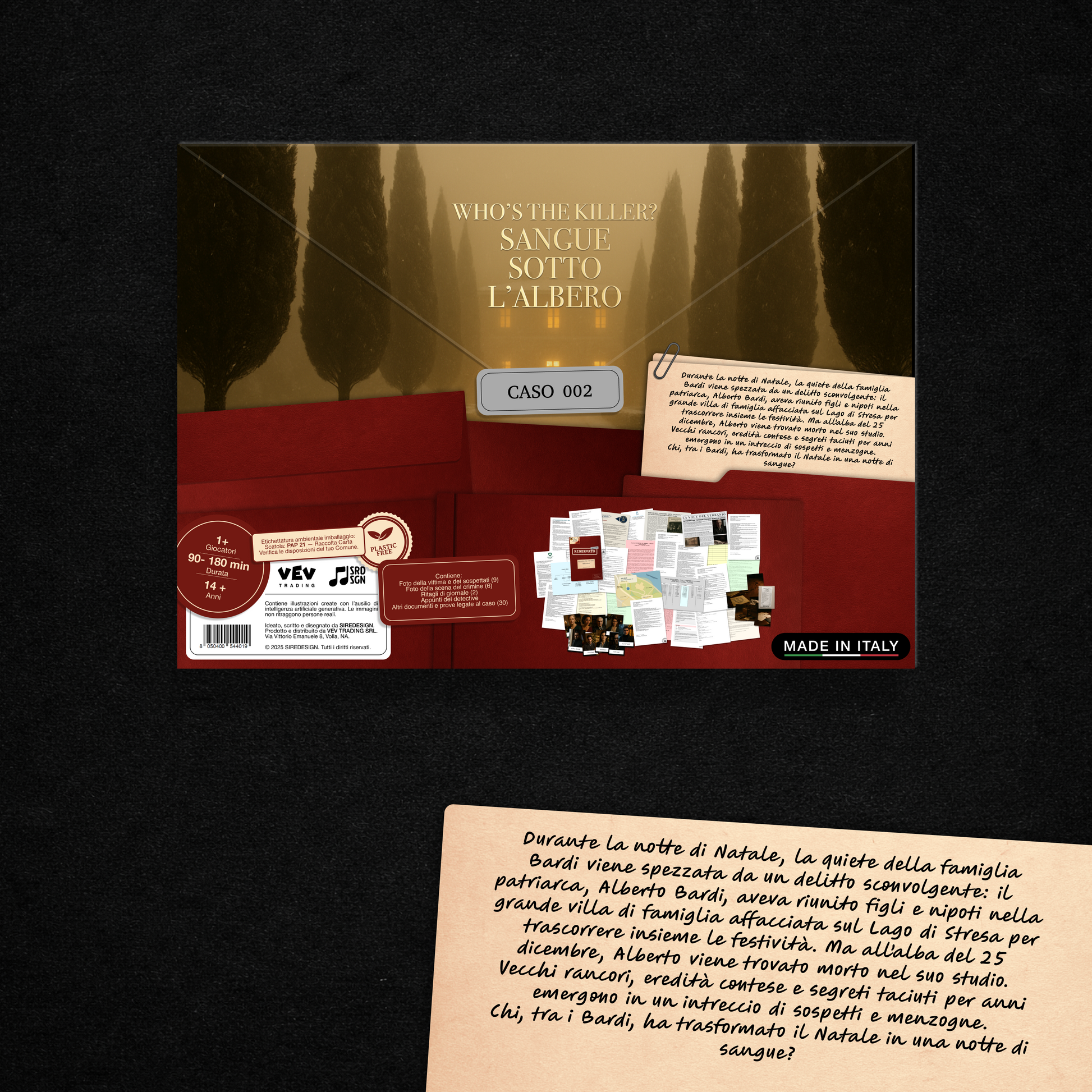 Con il bundle Who’s the Killer ricevi tre casi di omicidio indipendenti, pensati per trasformare una serata qualunque in una vera indagine criminale da risolvere insieme.